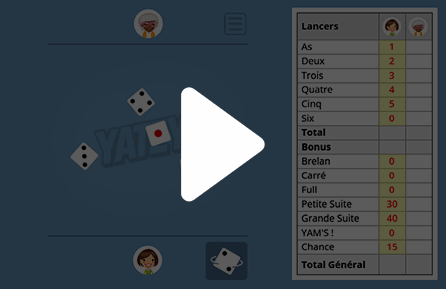 - Yams, aussi connu sous le nom de Yahtzee, est un jeu de dés né au Canada dans les années 1950 et vite devenu un classique dans le monde entier. Le mélange de chance et de stratégie l’a rendu populaire aussi bien en famille que chez les amateurs de jeux de société. Le but est de marquer le plus de points possible en lançant 5 dés jusqu’à 3 fois par tour. Après chaque lancer, vous pouvez mettre de côté certains dés et relancer les autres. À la fin du tour, vous devez choisir une case de votre grille de Yams pour y inscrire le résultat. Les catégories comprennent les chiffres simples (de un à six) ainsi que des combinaisons spéciales comme le brelan, le carré, le full, la petite suite, la grande suite et le Yams (cinq dés identiques). Une case « Chance » permet aussi d’inscrire n’importe quel lancer si aucune autre combinaison ne convient. La partie se termine lorsque toutes les cases de la grille sont remplies. Le gagnant est celui qui obtient le score total le plus élevé, en optimisant ses lancers et en choisissant avec soin où placer chaque combinaison. Jouer à yams en ligne permet de profiter de cette expérience classique à tout moment.